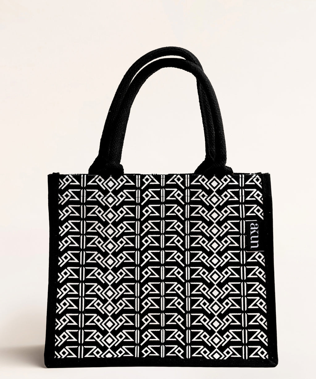 The graphic pattern features the word AKUN written in Arabic, repeated as a design element that celebrates identity and language through form. Durable and reusable, the tote is made to accompany gifting moments, daily routines, and gatherings. A practical piece that carries both objects and meaning, wherever it goes.